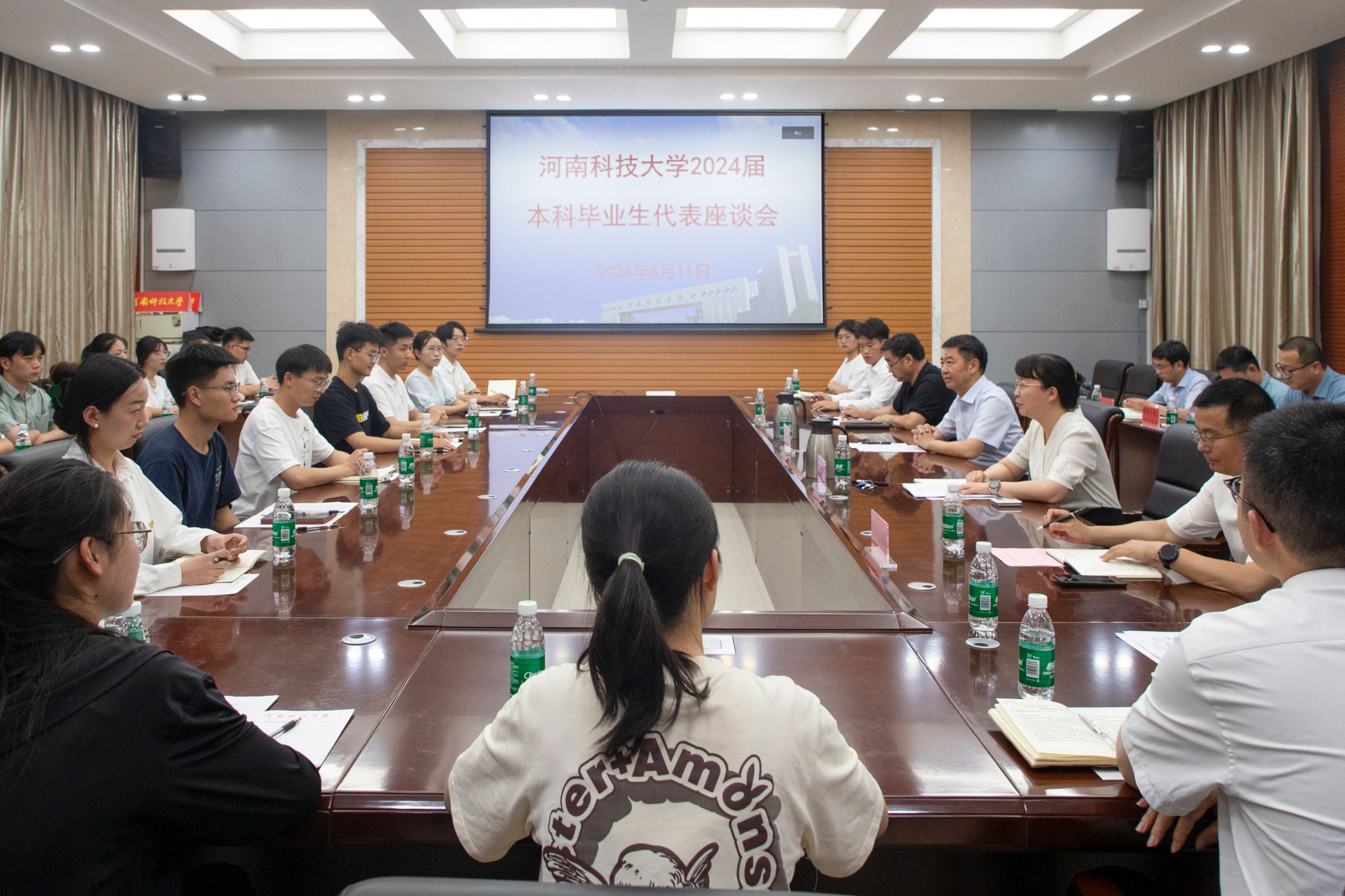 校新闻中心讯 6月11日下午,2024届本科毕业生代表座谈会在博园第一会议室召开。来自各学院书院的本科毕业生代表回顾了在校期间的成长经历,畅谈收获和感悟,感怀大学时光,共话未来发展,为学校发展建言献策。党委书记、校长王洪彬,党委副书记海然,学校相关部门主要负责同志参加座谈。