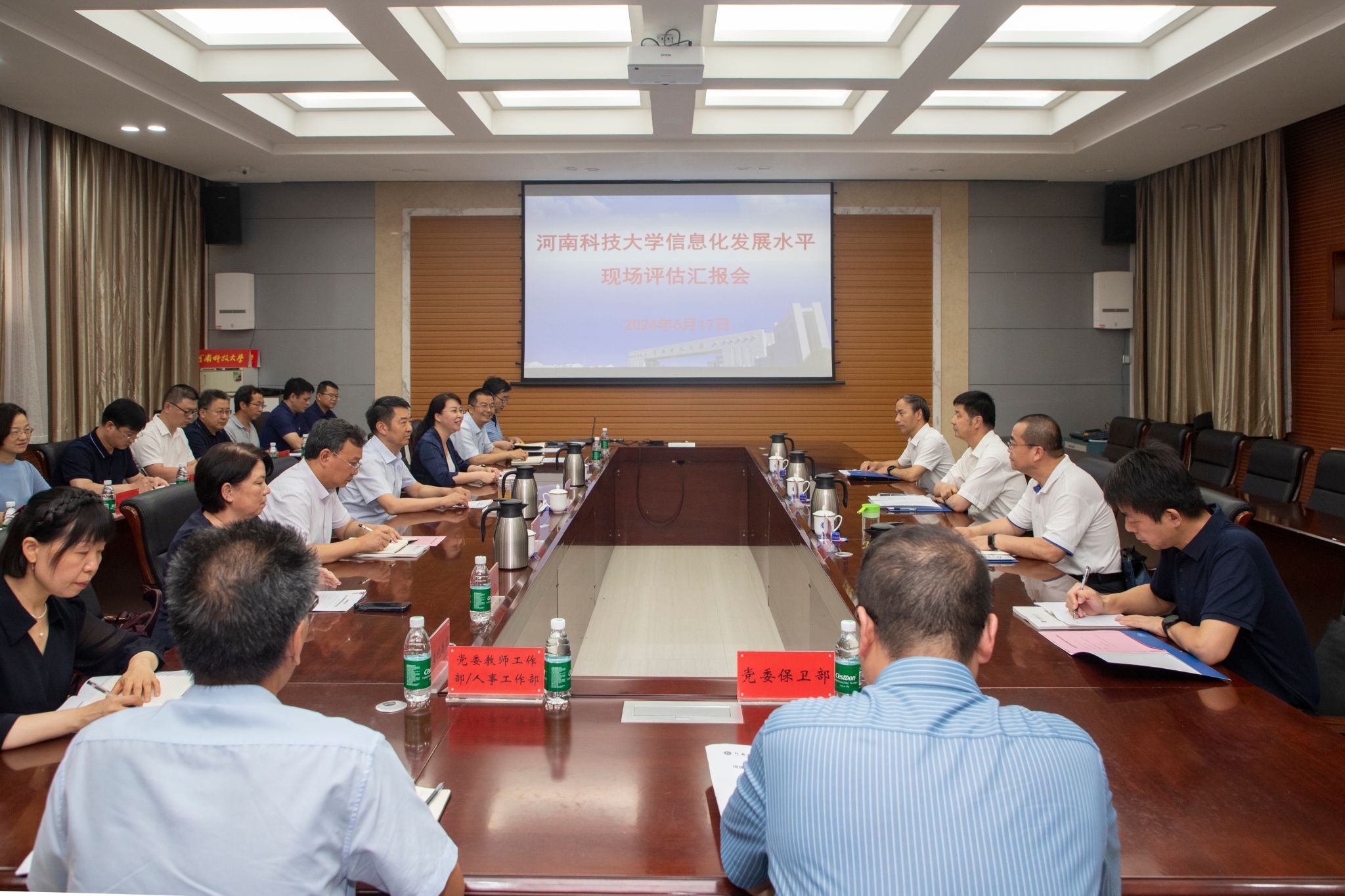 校新闻中心讯 6月17日,河南省本科高校信息化发展水平评估第二评估组来金沙官网检查指导学校信息化工作。党委书记、校长王洪彬,党委副书记海然,副校长穆云超,学校网络安全和信息化委员会委员单位和相关单位负责人参加评估活动。