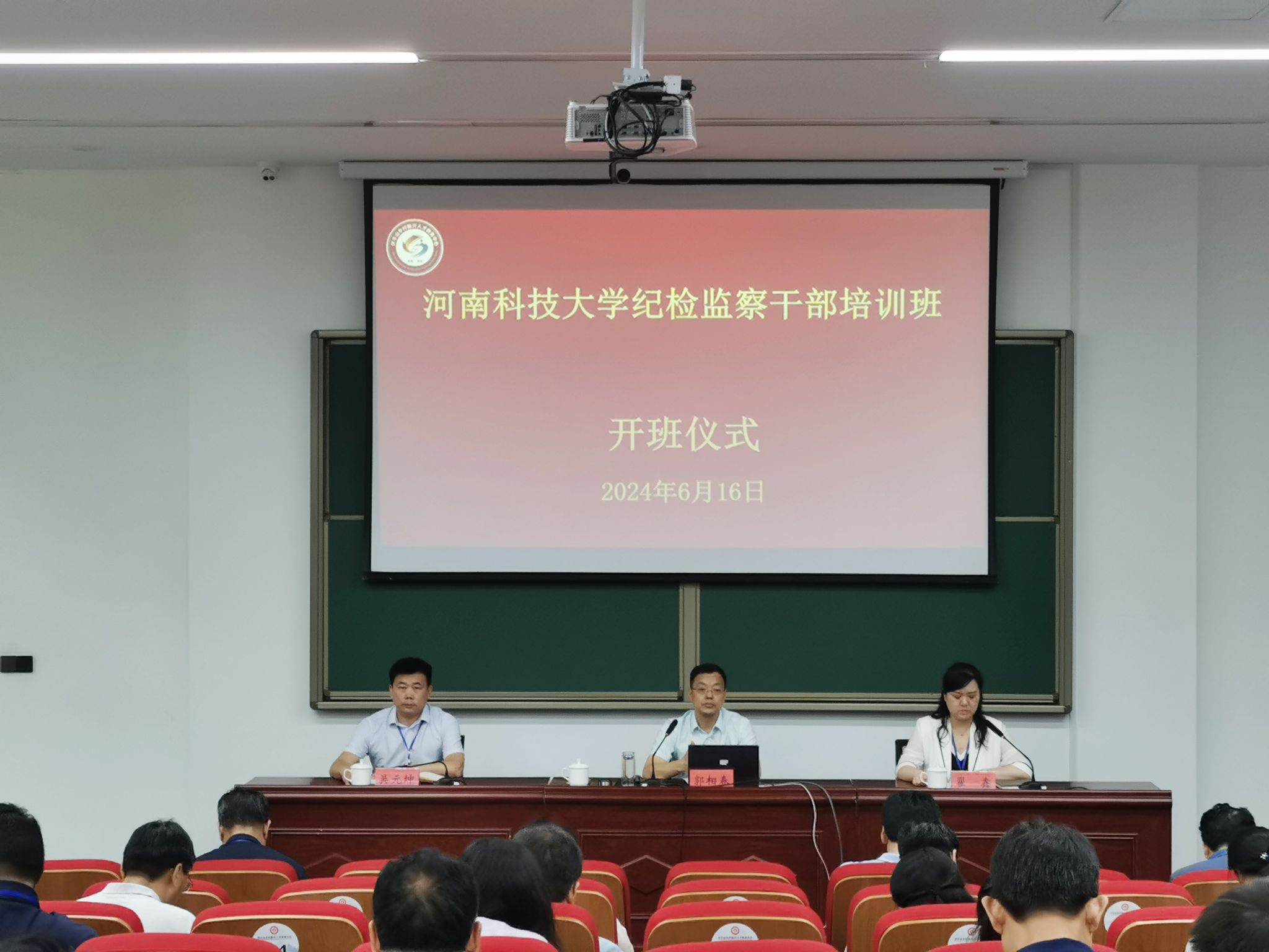 开班式上,郭相春为全体纪检监察干部讲授专题廉政党课并进行集体谈话。他表示,举办这次培训是深入学习贯彻二十届中央纪委三次全会、十一届省纪委四次全会精神,落实学校党纪学习教育工作部署,加强纪检监察工作干部队伍建设的具体举措,也是落实全省加强基层监督工作推进会议精神的具体行动。全体纪检监察干部要严守政治纪律,看一看政治意识是否坚定、宗旨意识是否减弱、规则意识有无松动,自觉做到对党绝对忠诚;要严守组织纪律,看一看组织观念是否树牢、是否有非组织言行、有无选择性执行情况,自觉做到相信依靠组织;要严守廉洁纪律,看一看廉洁防线是否牢固、公仆意识是否淡化、朋友圈子有无隐患,自觉做到自身干净硬气;要严守群众纪律,看一看群众立场是否站稳、群众意识有无减弱、有无优亲厚友行为,自觉做到维护师生利益;要严守工作纪律,看一看履职尽责是否到位、斗争精神是否保有、力度质效有无保障,自觉做到尽心竭力干事;要严守生活纪律,看一看生活作风是否端正、攀比思想有无苗头、家风家教是否优良,自觉做到廉洁修身齐家。要旗帜鲜明讲政治,以“两个永远在路上”的坚定和执着护航学校高质量发展;要时刻牢记“打铁必须自身硬”,以更高标准、更严要求规范言行举止,增强纪律意识、绷紧纪律之弦;要重点聚焦“一把手”和领导班子,紧盯“三重一大”事项研究决策,做好基层政治监督和对权力运行的监督,打通全面从严治党“最后一公里”;要牢固树立“校党委中心工作就是纪委监督服务保障重点工作”的理念,以“有解”思维攻坚克难,切实维护干事创业风清气正的政治生态,始终为学校事业高质量发展提供坚强的纪律保障!