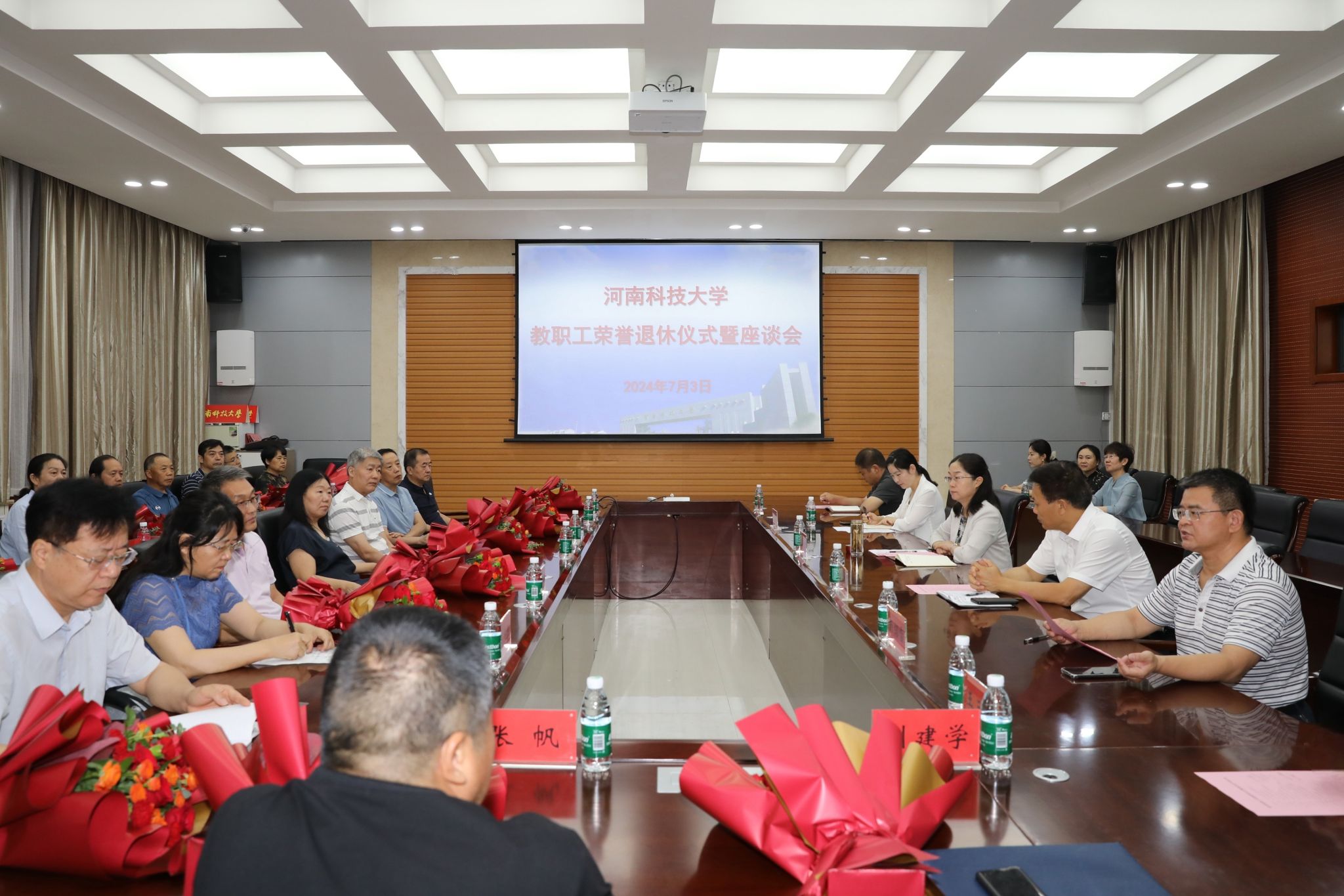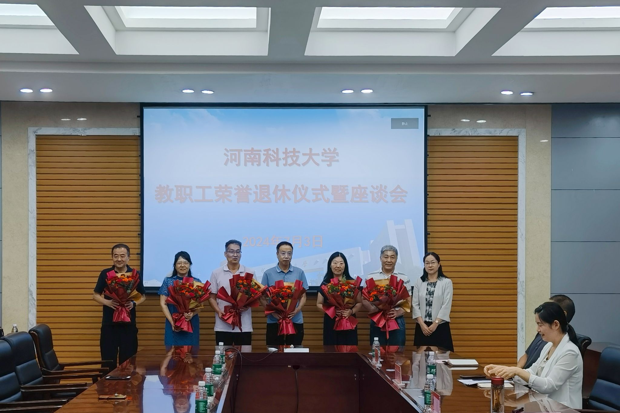 校新闻中心讯 7月3日,学校举行教职工荣誉退休仪式暨座谈会。党委副书记、工会主席杨霞参加仪式。