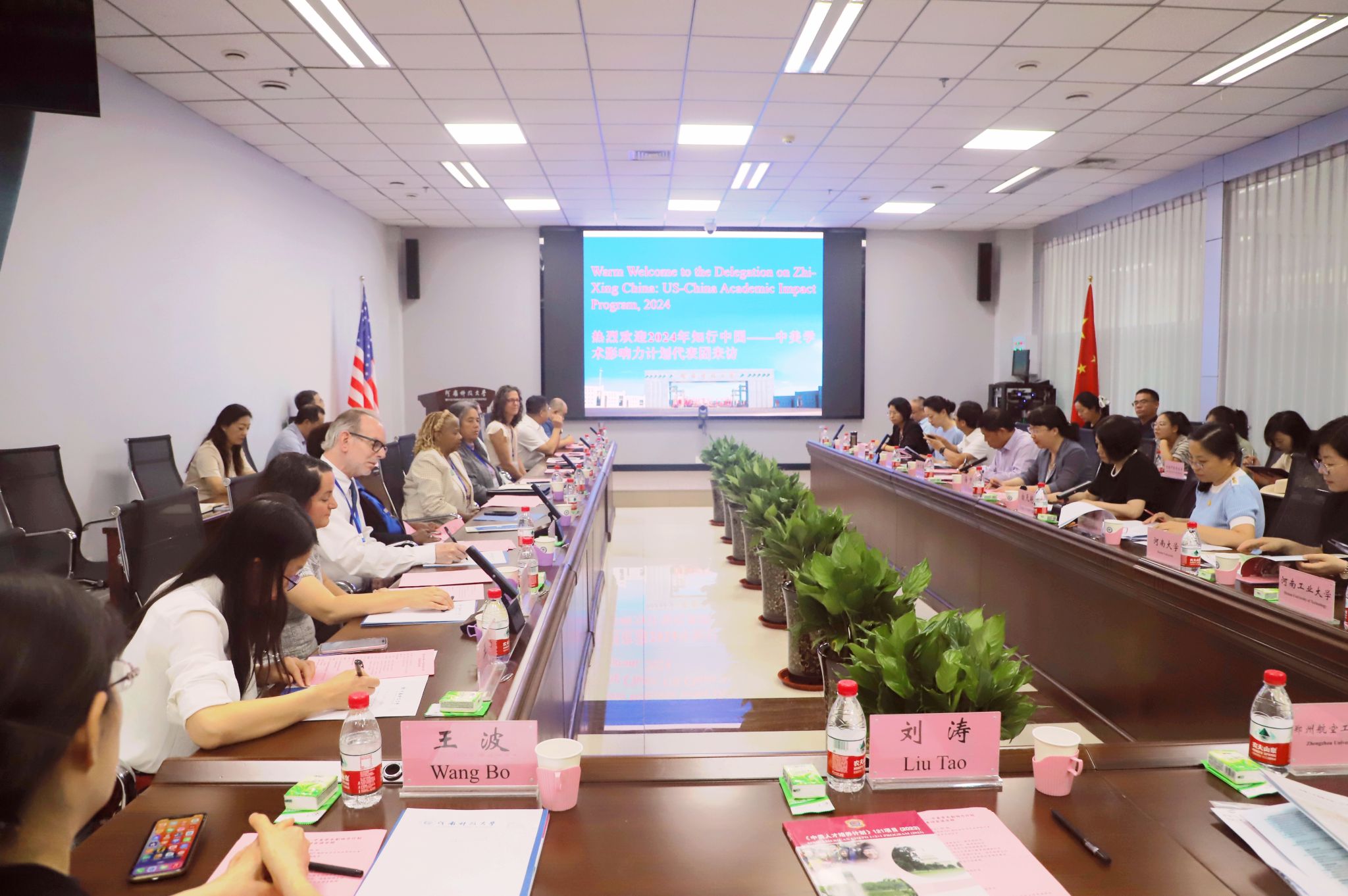 海然致欢迎辞,代表学校向代表团一行、各位领导和同仁的到来表示热烈欢迎,并简要介绍了学校人才培养、学科建设、国际交流等方面的基本情况和发展成就。她表示,金沙检测线路js69通过与美国高校开展联合培养、合作办学、教师访学、科研合作等项目,为走出“中国特色”和“世界眼光”融合的中美教育交流合作之路做出了有益探索。学校始终高度重视教育国际化工作,未来欢迎更多的美国大学生、青年学者来校访问交流,深入体验河洛文化,全方位感知、体会和了解中国,共同推动中美高等教育合作新发展。