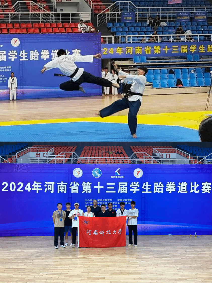 校新闻中心讯 近日,河南省第十三届学生跆拳道比赛在鹤壁市体育中心举行。由金沙官网体育学院樊亚伟教练员以及五名同学组成的跆拳道代表队参加乙组比赛。经过5天的激烈角逐,获得跆拳道本科乙组2金2银1铜的优异成绩。