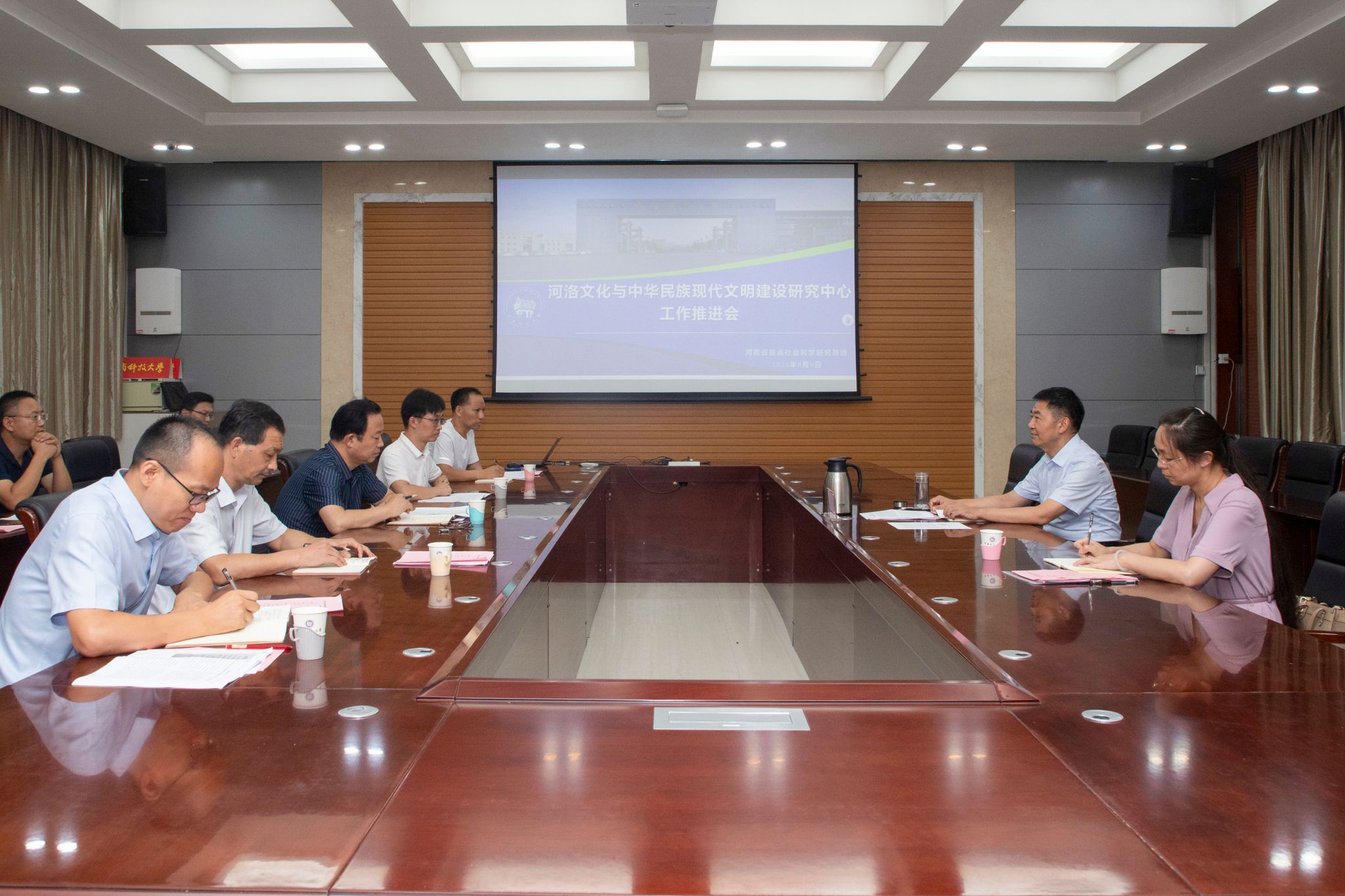 校新闻中心讯 8月9日,学校召开河南省重点社会科学研究基地“河洛文化与中华民族现代文明建设研究中心”工作推进会议。党委书记、校长王洪彬出席会议并讲话。